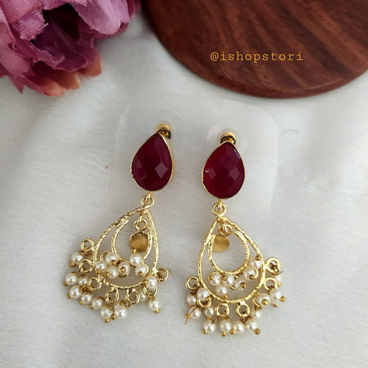 Mira Stone & Pearls Chandbalis Earrings