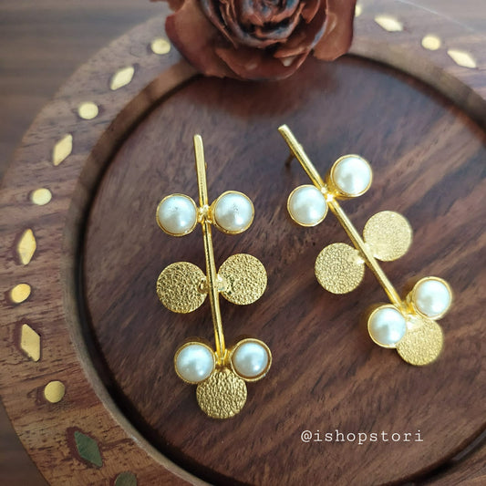 Golden Dots Twig Natural Pearl Earrings