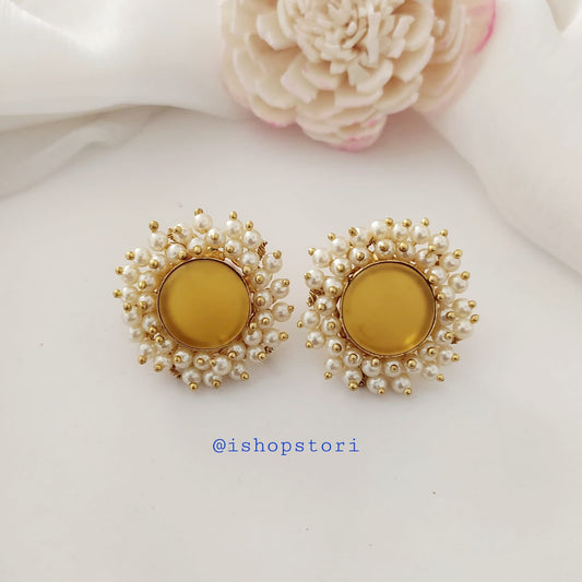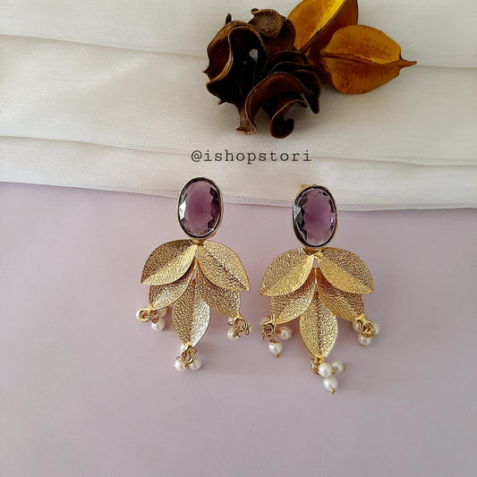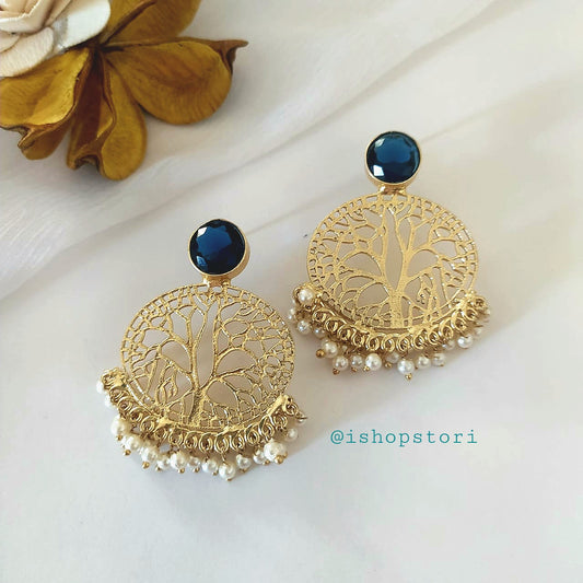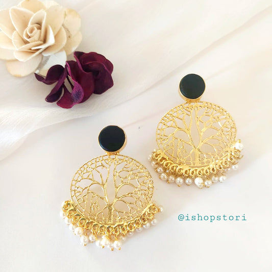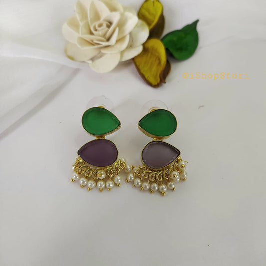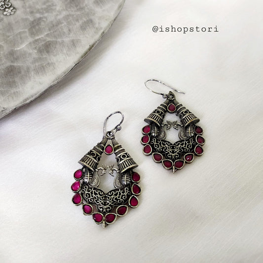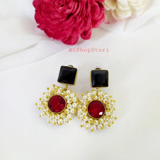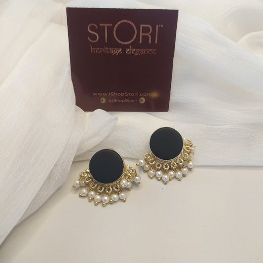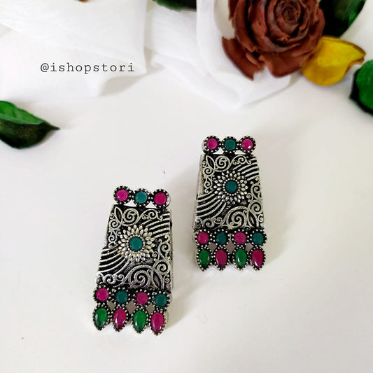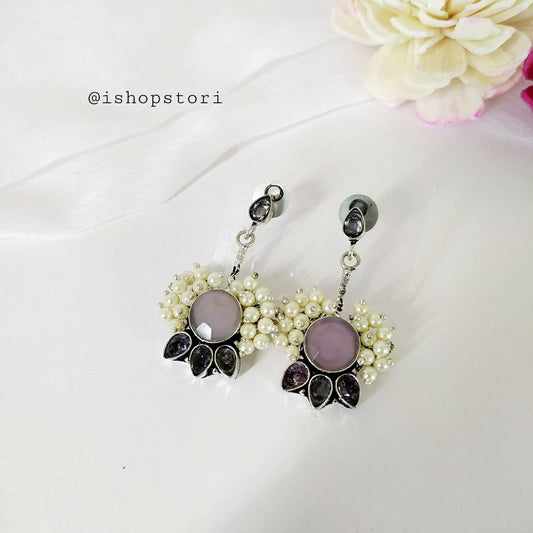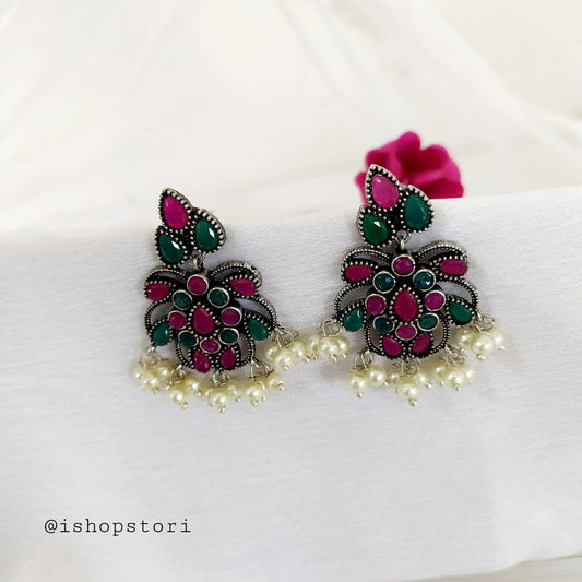 Xenia Monalisa Stone & Pearl Floral Oxidised Earrings