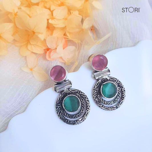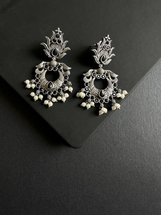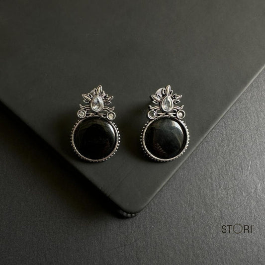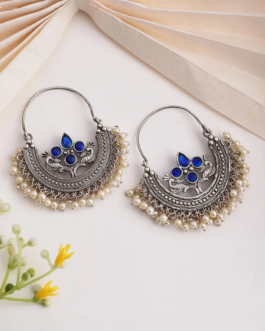 Sanchi Handcrafted Round Silver Look Alike Earrings
