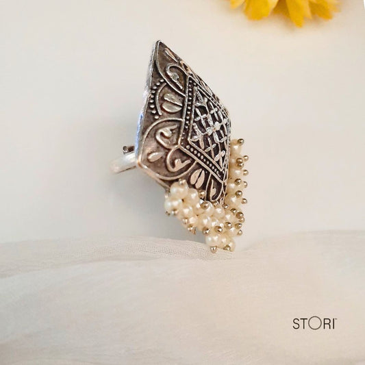 Rhombus Silver Lookalike Adjustable Finger Ring