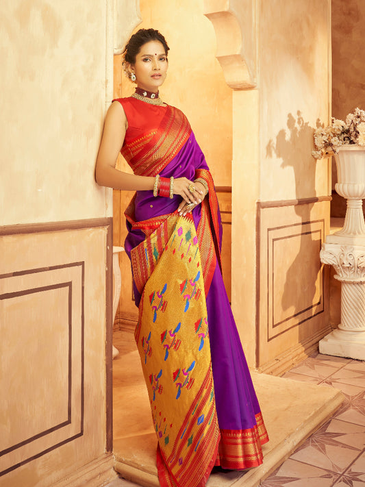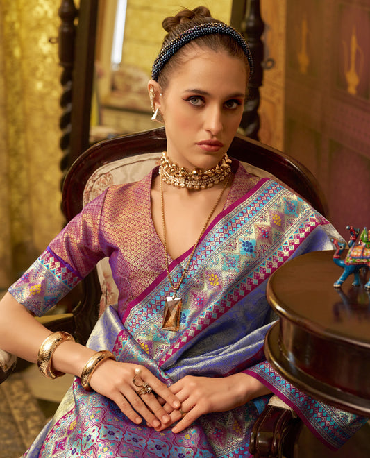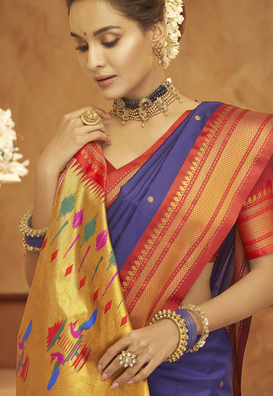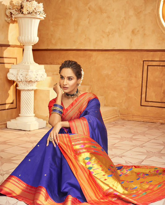 Royal Blue Paithani Silk Saree With Allover Zari Woven Motifs