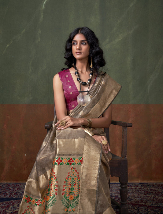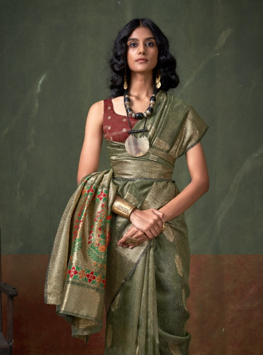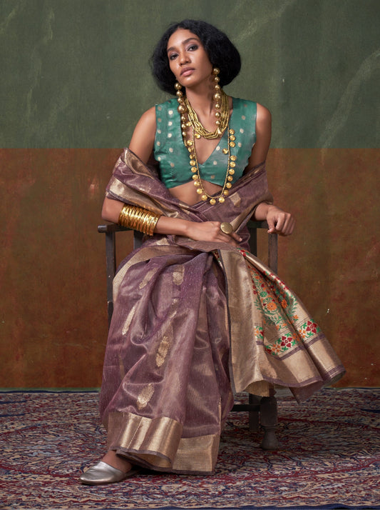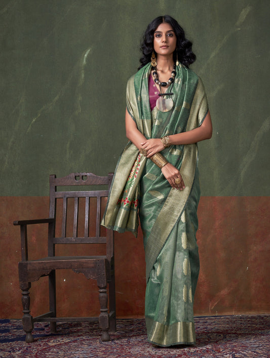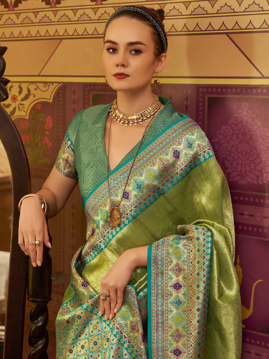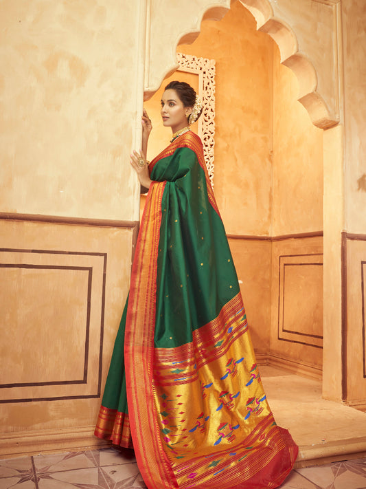 Fig Green Dual Shade Paithani Silk Saree With Lotus Woven Motifs