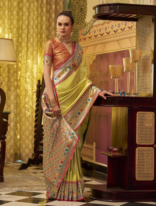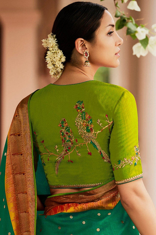 Shamrock Green Pathani Saree With Embroidered Blouse