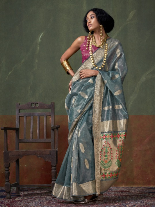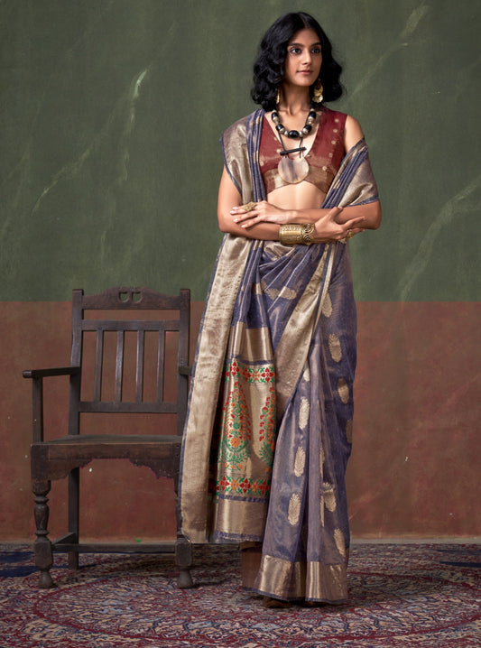 Sky Blue Paithani Silk Saree With Allover Zari Woven Motifs