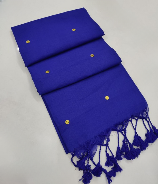 Blue Handloom Cotton Saree With Sequins