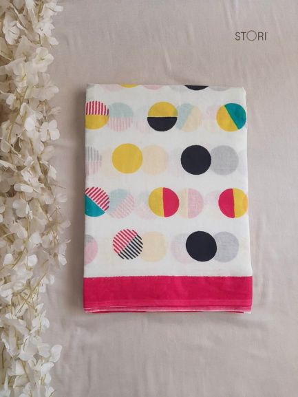 Polka Dots Printed Handloom Cotton Mulmul Saree