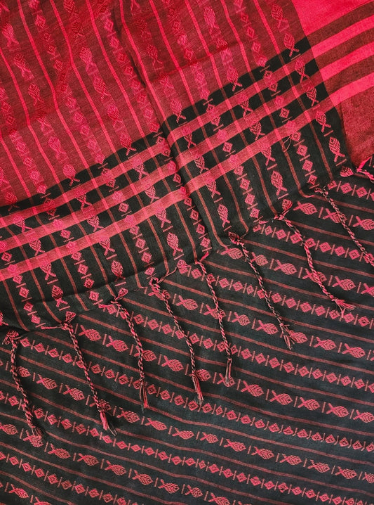 Red & Black Handloom Soft Cotton Saree