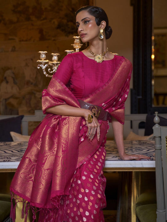 Cranberry Pink Handloom Woven Raw Khadi Silk Saree