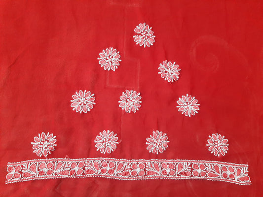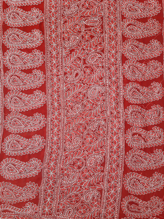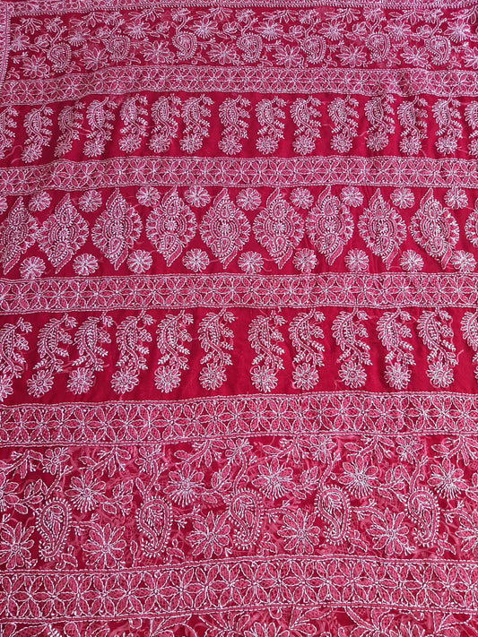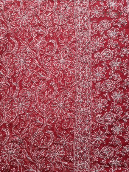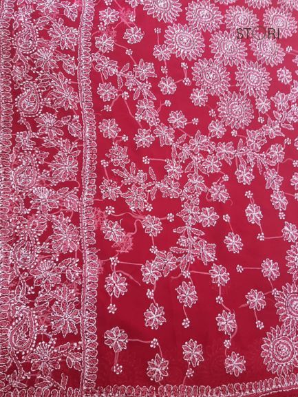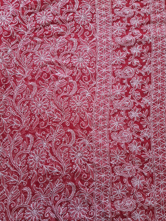 Red Noor Full Jaal Hand Embroidered Lucknowi Chikankari Saree