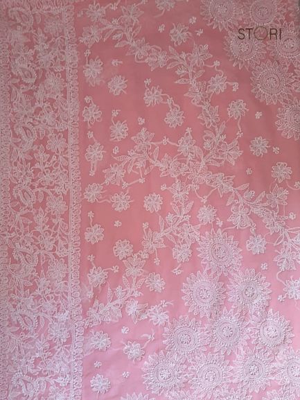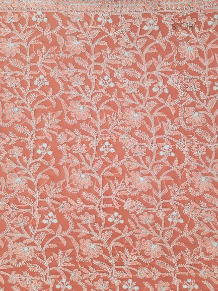 Carrot Pink Noor Full Jaal Hand Embroidered Lucknowi Chikankari Saree