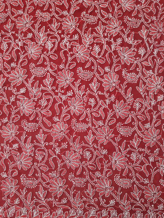 Maroon Surya Hand Embroidered Lucknowi Chikankari Saree