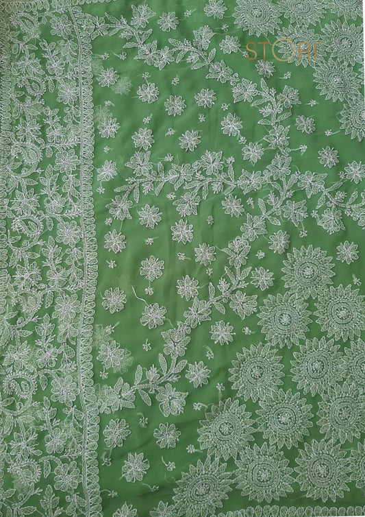 Fern Green Surya Hand Embroidered Lucknowi Chikankari Saree