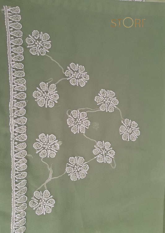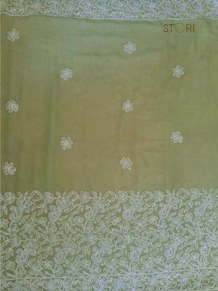 Olive Green Surya Hand Embroidered Lucknowi Chikankari Saree