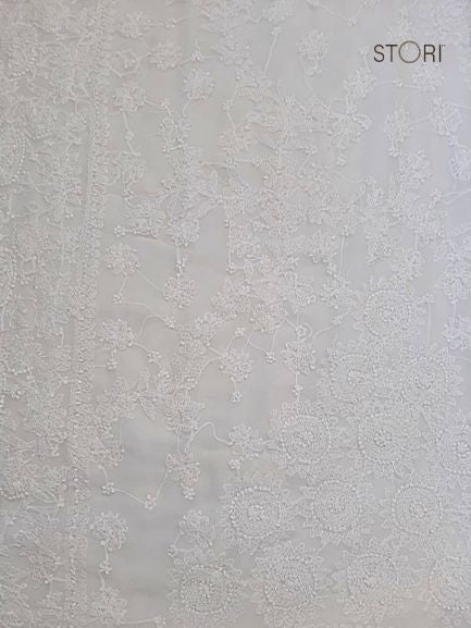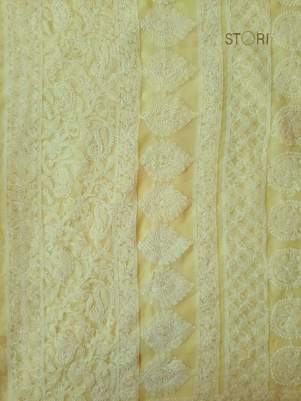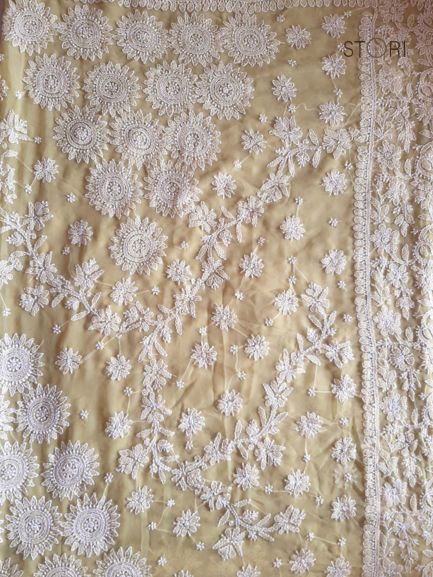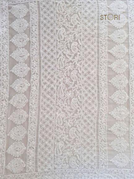 Pearl White Surya Hand Embroidered Lucknowi Chikankari Saree