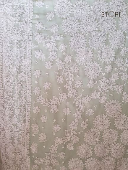 Mint Green Surya Hand Embroidered Lucknowi Chikankari Saree