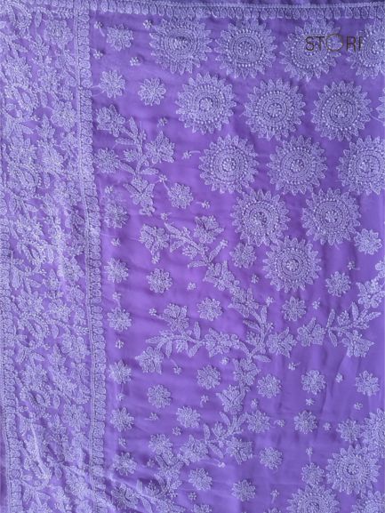 Purple Surya Hand Embroidered Lucknowi Chikankari Saree
