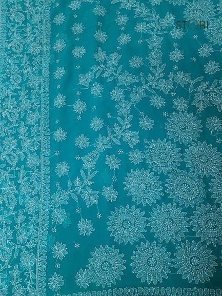 Firozi Surya Hand Embroidered Lucknowi Chikankari Saree