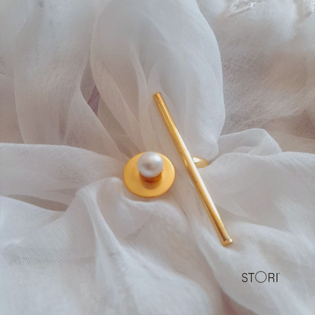 Golden Line & Disc Pearl Finger Ring. Flaunt it with your favorite attire!