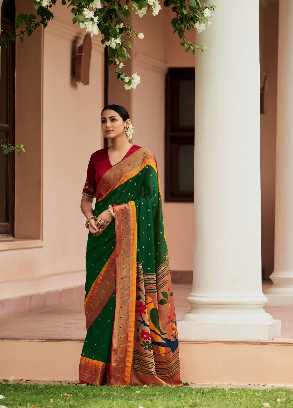 Simple and sober saree with paithani borders and pallu for the Peshwai look.