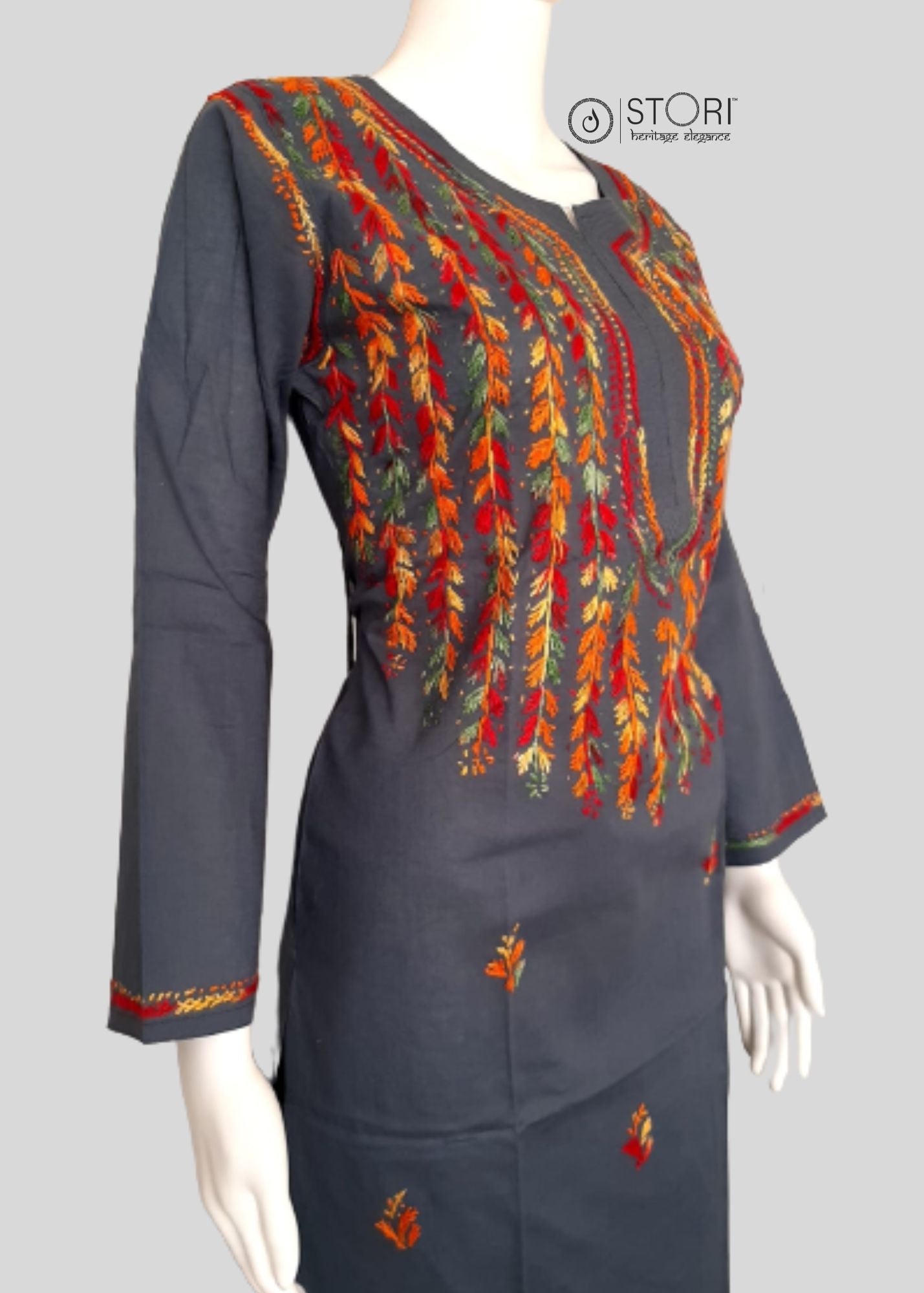 Nihaar Grey Pure Cotton Multithread Chikankari Kurti